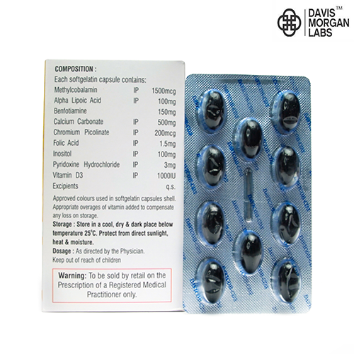 Methylcobalamin, Alpha Lipoic Acid, Benfotamine, Calcium Carbonate, Chromium Picolinate, Folic Acid, Inositol, Pyridoxine Hydrochloride & Vitamin D3 Softgel Capsules